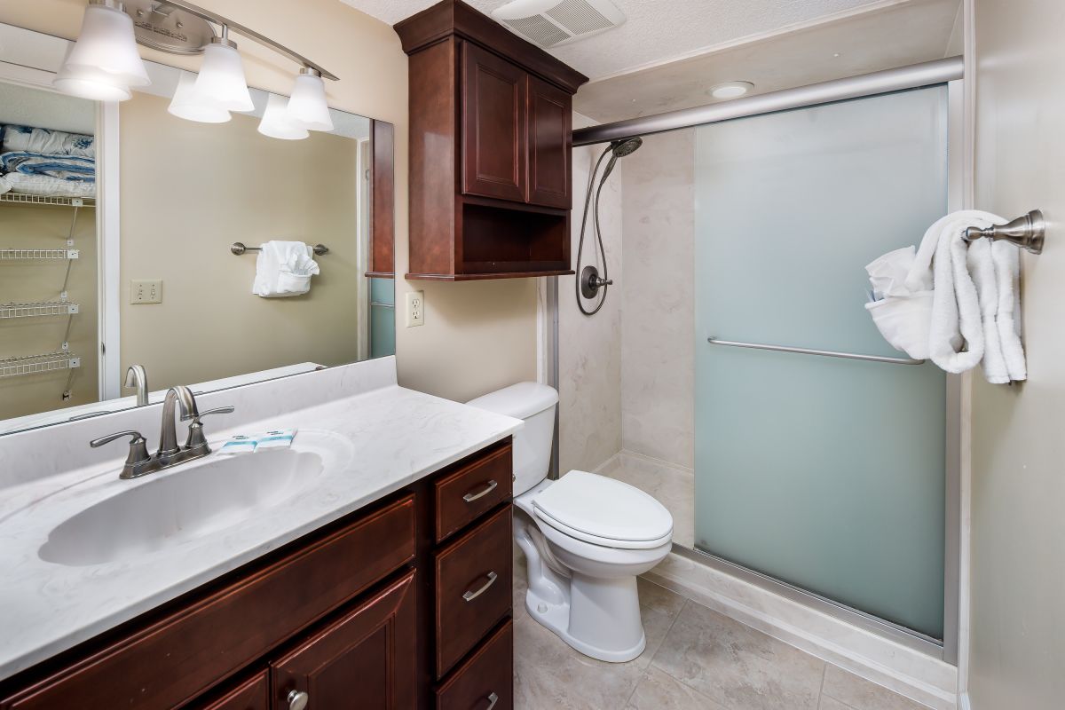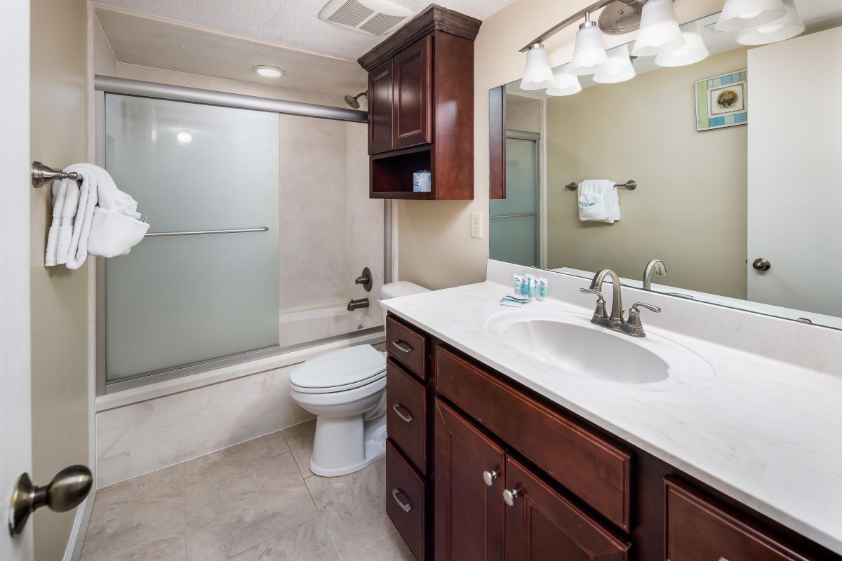 SURF DWELLER CONDOMINIUMS ARE THE MOST SPACIOUS OF THE 2 BEDROOM UNITS, ALLOWING TWO LARGER BEDS TO ADORN THE GUEST BEDROOM. A FAMILY WITH QUICKLY GROWING TEENS OR THOSE WANTING THE IN-LAWS TO JOIN IN ON THE VACAY FUN WILL SIMPLY LOVE THE AMOUNT OF ROOM EACH PERSON OF THE GROUP WILL GET IN THESE VACATION HOMES. THE MASTER BEDROOM OF COURSE HAS ITS OWN MASTER BATHROOM AND THERE IS A FULL-SIZED SECOND BATHROOM AT THE FRONT OF THE UNIT WITH DIRECT ACCESS FROM THE GUEST BEDROOM AS WELL AS THE HALLWAY AREA.