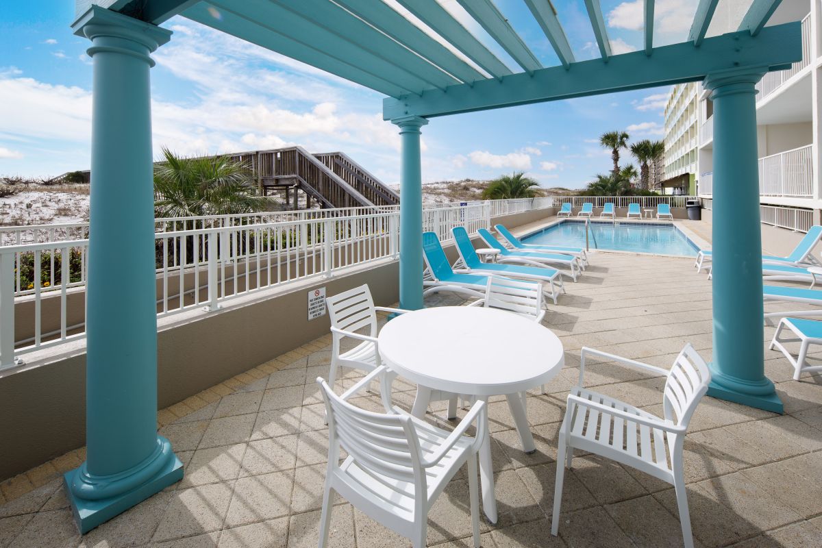 Gulf Dunes Condominiums is close to Fort Walton’s shopping and dining and a mere ten minutes from Destin. Stroll along the beach to the Okaloosa fishing pier or Boardwalk. Stay with us and enjoy access to two beachside swimming pools (one heated November – March), private beach walkover, exercise room, tennis court, and a barbecue area.