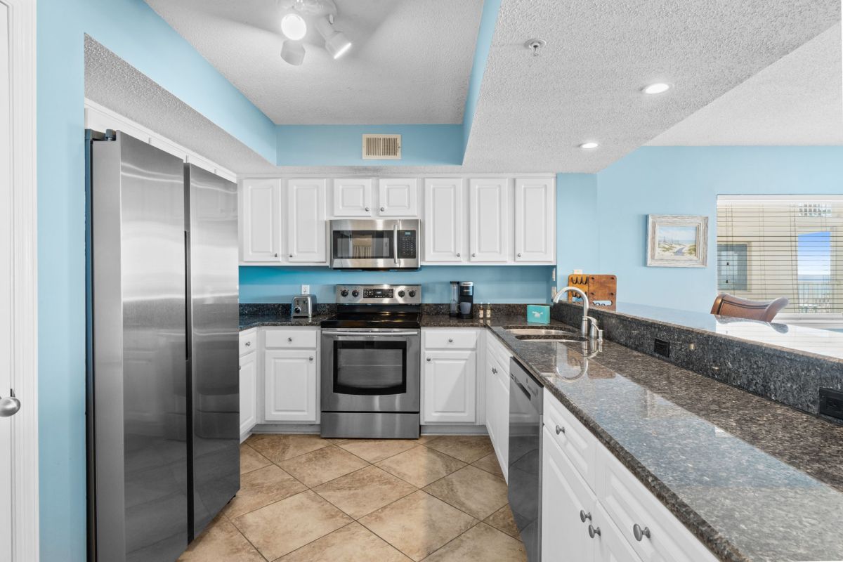 This beautifully appointed condo features a king-size bed in the master bedroom, four TVs, and a fully equipped, user-friendly kitchen—perfect for preparing meals like a true chef.